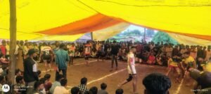 समिति द्वारा बारिश के पानी से बचने के लिए दर्शकों एवं खिलाड़ियों के लिए तेज बारिश के बीच तिरपाल बांध कर कबड्डी प्रतियोगिता करवाया ।