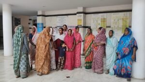 ग्राम लोनी में शराबियों से त्रस्त महिलाएं।