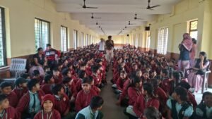 बुरहानपुर पुलिस द्वारा सड़क सुरक्षा माह अभियान के तहत स्कूल में छात्र-छात्राओं को किया जागरूक