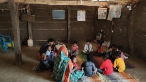आजादी के 78 साल बाद भी झोपड़ी में लग रही आंगनवाड़ी।